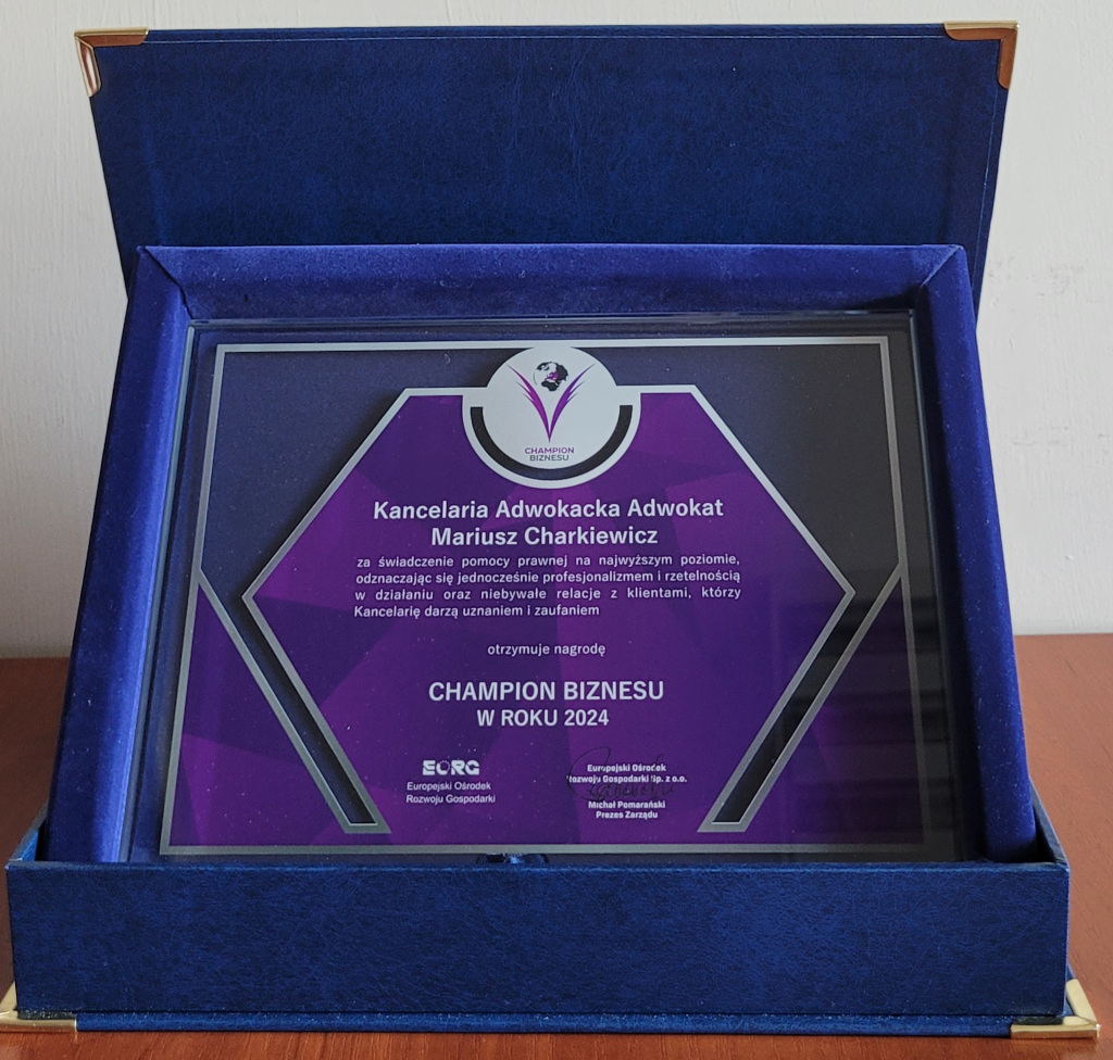 Uhonorowanie Kancelarii Adwokackich Adwokata Mariusza Charkiewicza Laureatem Nagrody