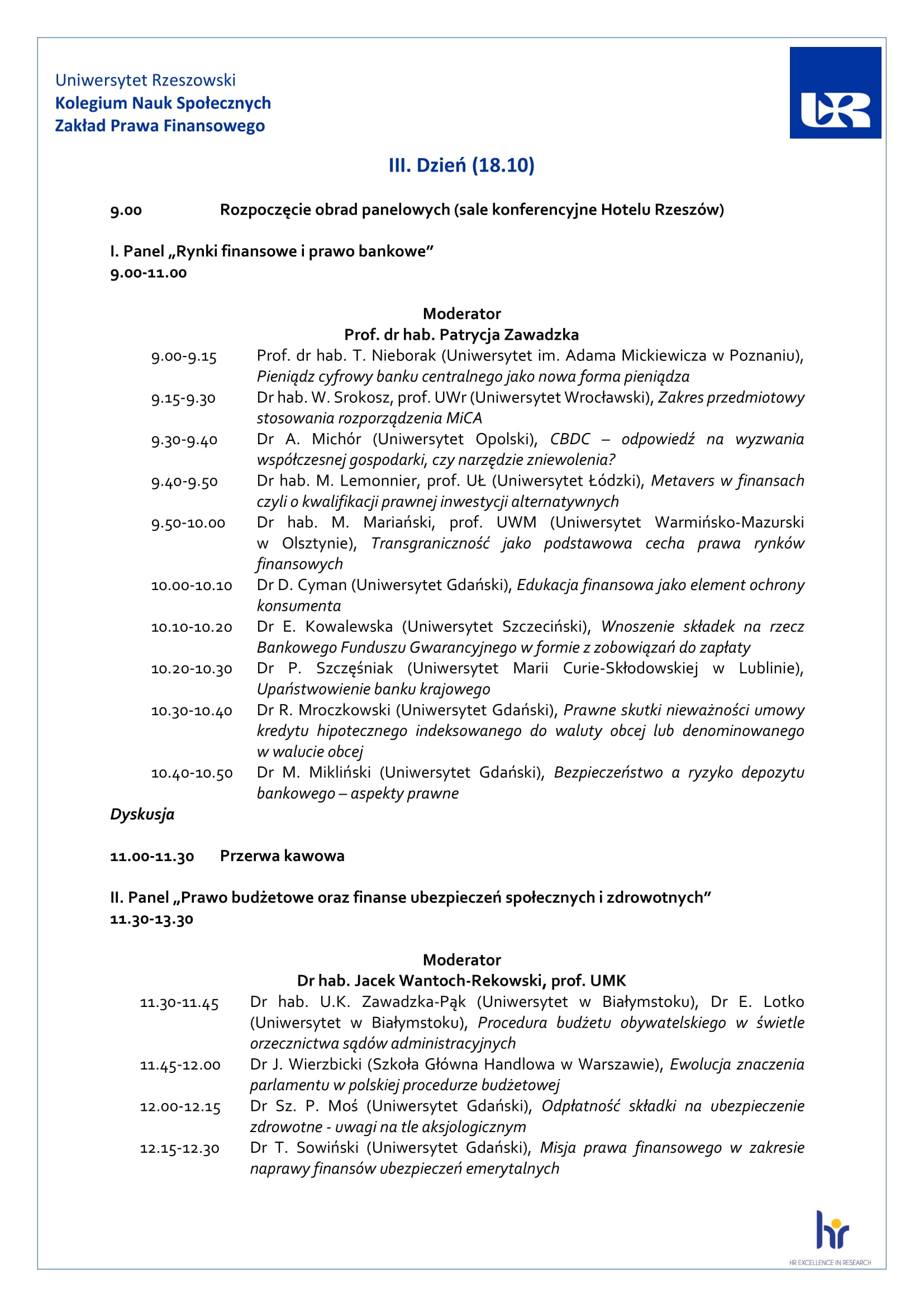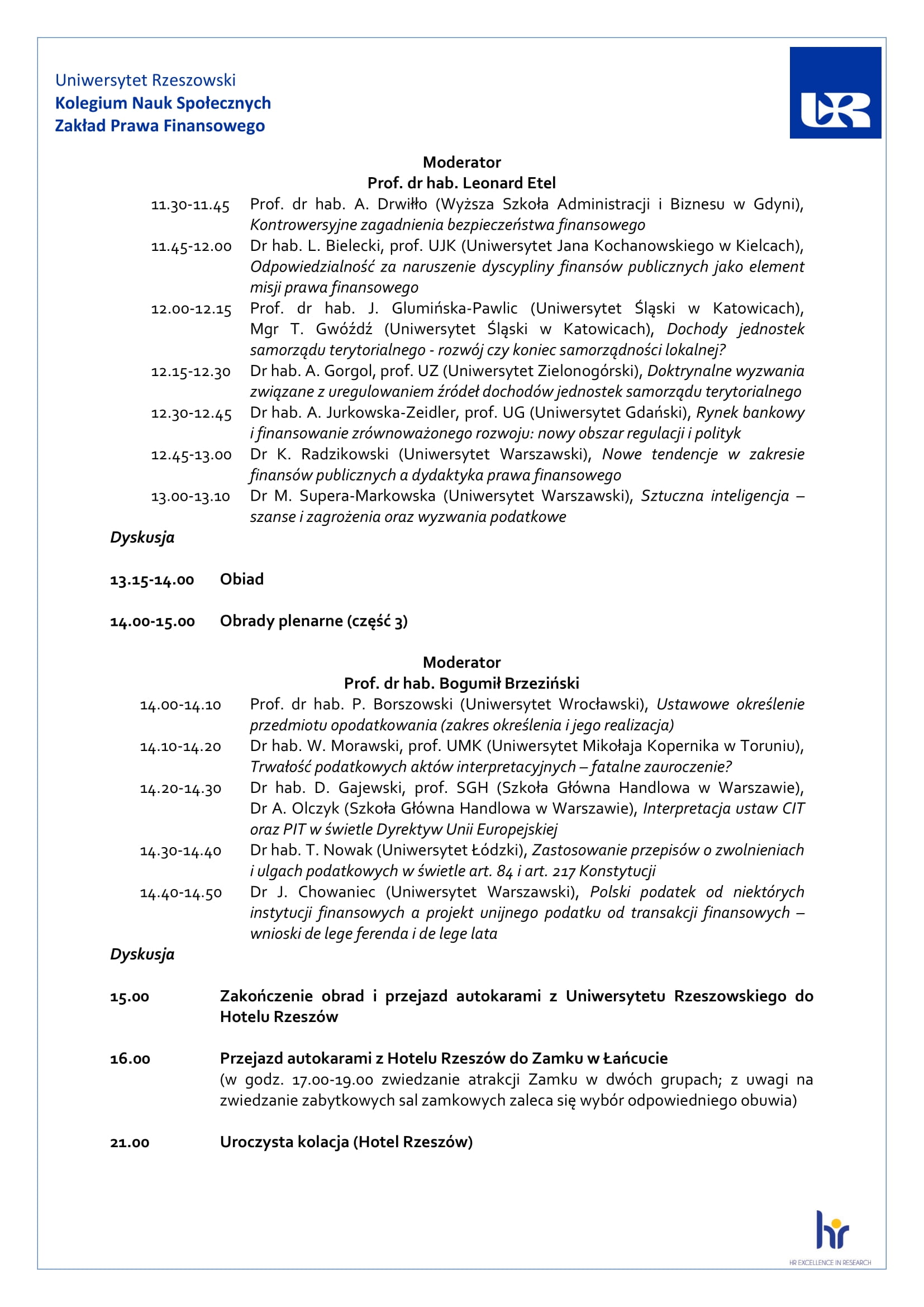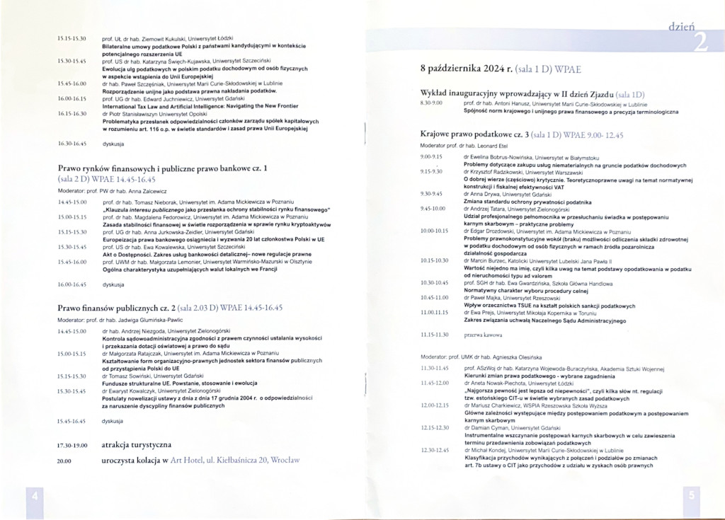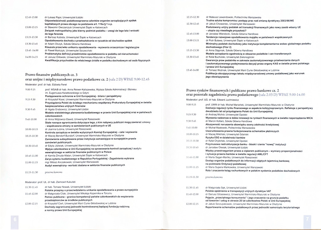 Wygłoszony referat: Mariusz Charkiewicz "Polish financial regulations in the light of constitutional regulations and rules concerning finances" & Mariusz Popławski "Constitutional regulation of financial law in Poland"