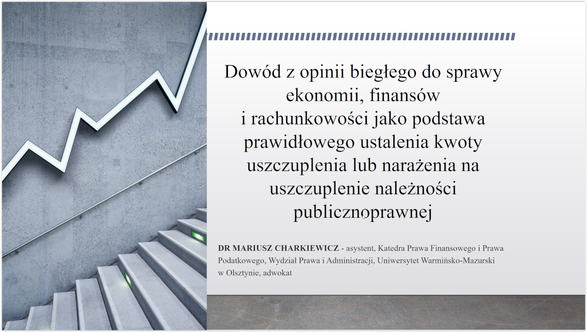 Wygłoszony referat nt. "Dowód z opinii biegłego ds. ekonomii, finansów i rachunkowości jako podstawa prawidłowego ustalenia kwoty uszczuplenia lub narażenia na uszczuplenie należności publicznoprawnej".