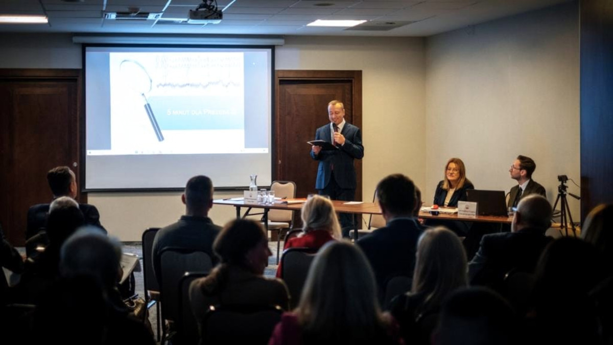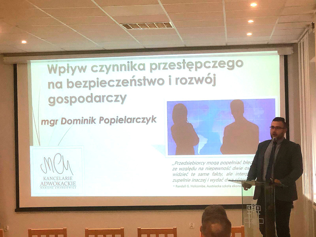wygłoszone referaty nt. Adw. Mariusz Charkiewicz „Środki zaradcze i strategie zapobiegania przestępczości gospodarczej”, mgr Dominik Popielarczyk „Wpływ czynnika przestępczego na bezpieczeństwo i rozwój gospodarczy".