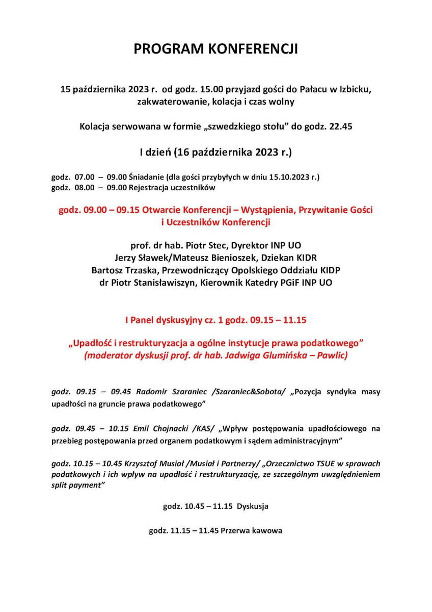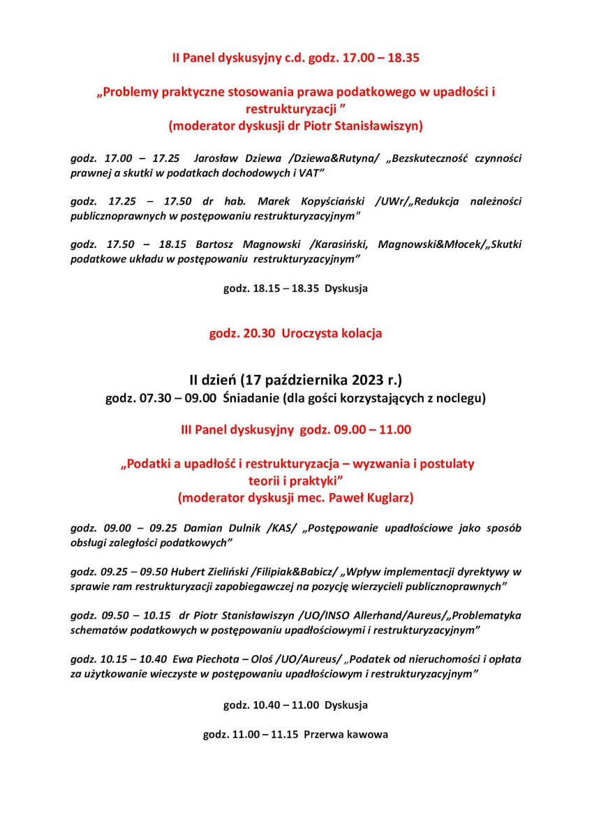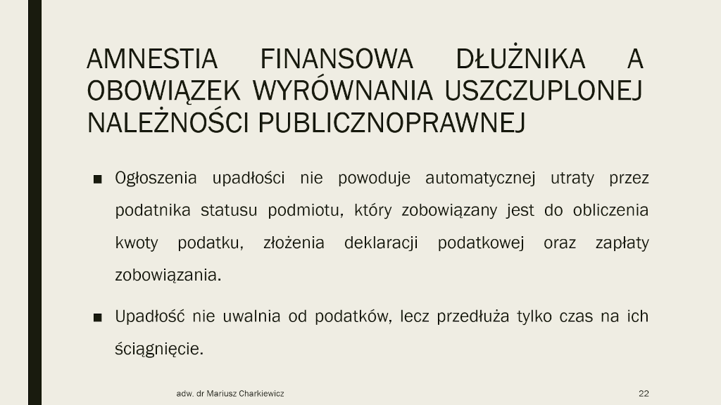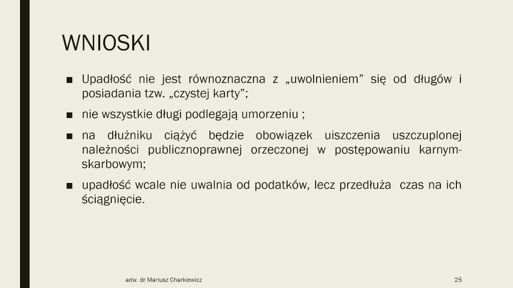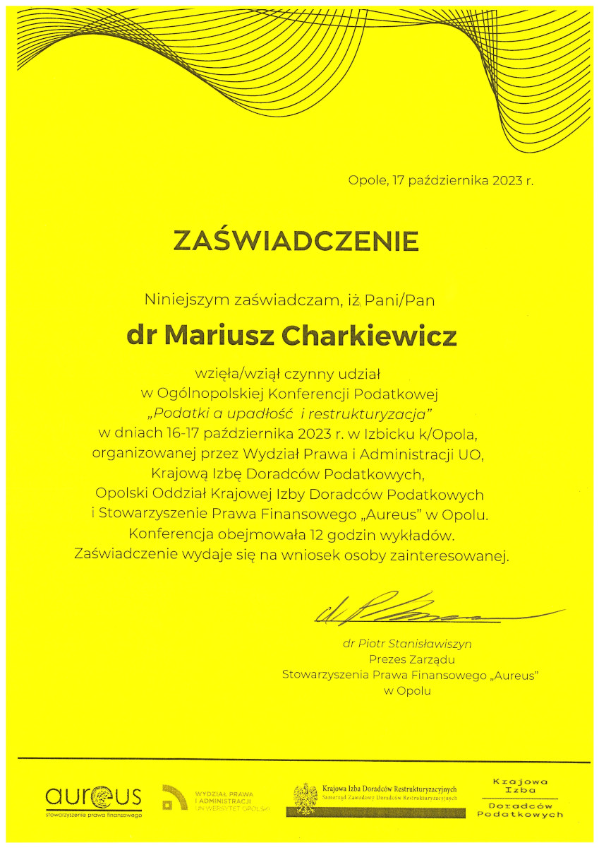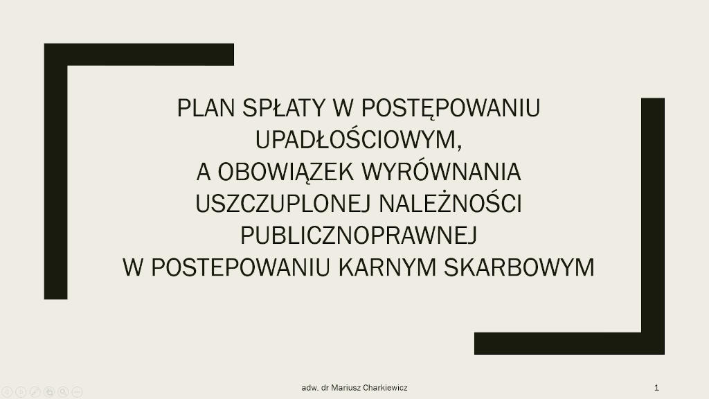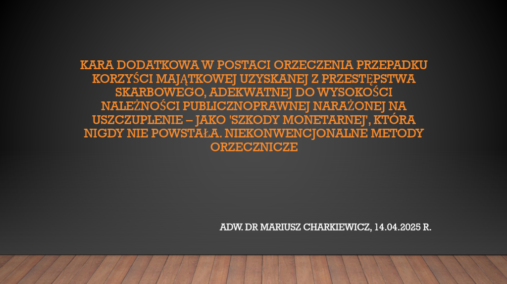 Ogólnopolska II Konferencja Podatkowa "Podatki a upadłość i restrukturyzacja", wystąpienie Adw. dr Mariusz Charkiewicz nt. "Plan spłaty w postępowaniu upadłościowym, a obowiązek wyrównania należności publicznoprawnej w postępowaniu karnym skarbowym",