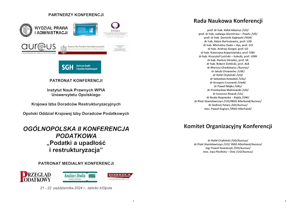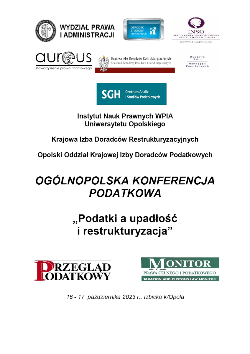 Konferencja Naukowa organizowana przez Lubuski, Łódzki, Wielkopolski, Zachodniopomorski Oddział Krajowej Izby Doradców Podatkowych, Wydział Prawa i Administracji Uniwersytetu im. Adama Mickiewicza w Poznaniu