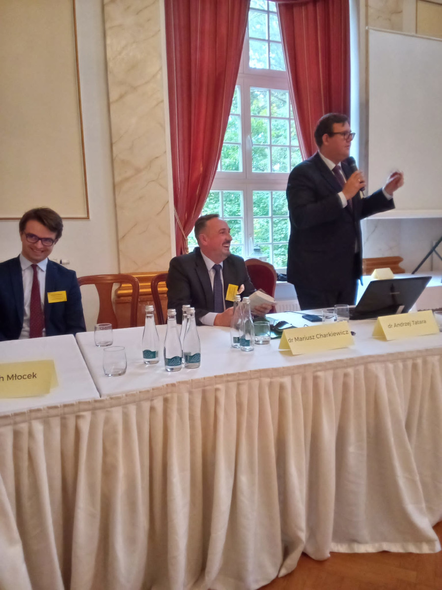 adw. dr Mariusz Charkiewicz prelegent panelu dyskusyjnego pt. ,,Instrumentalność działania organówpodatkowych jako negatywna przesłanka zawieszenia biegu terminu przedawnienia zobowiązania podatkowego", uczestnik Dominik Popielarczyk.