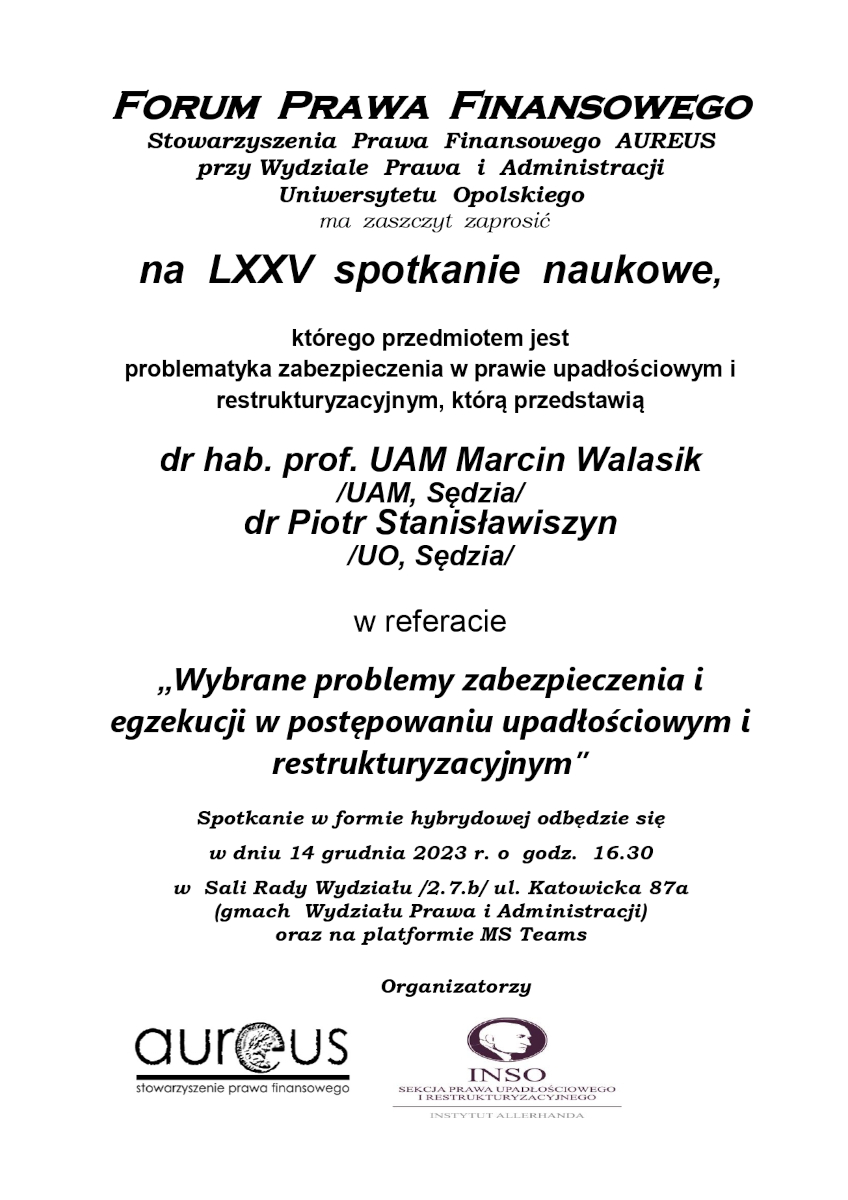 Udział przedstawiciela kancelarii w LXXV spotkaniu naukowym „Wybrane problemy zabezpieczenia i egzekucji w postępowaniu upadłościowym i restrukturyzacyjnym”- w formie hybrydowej.