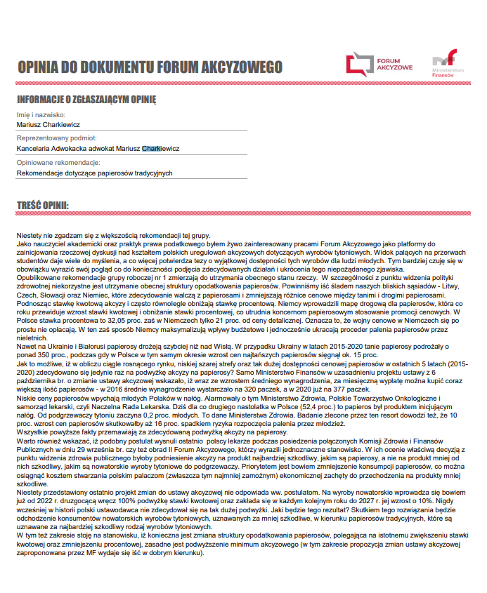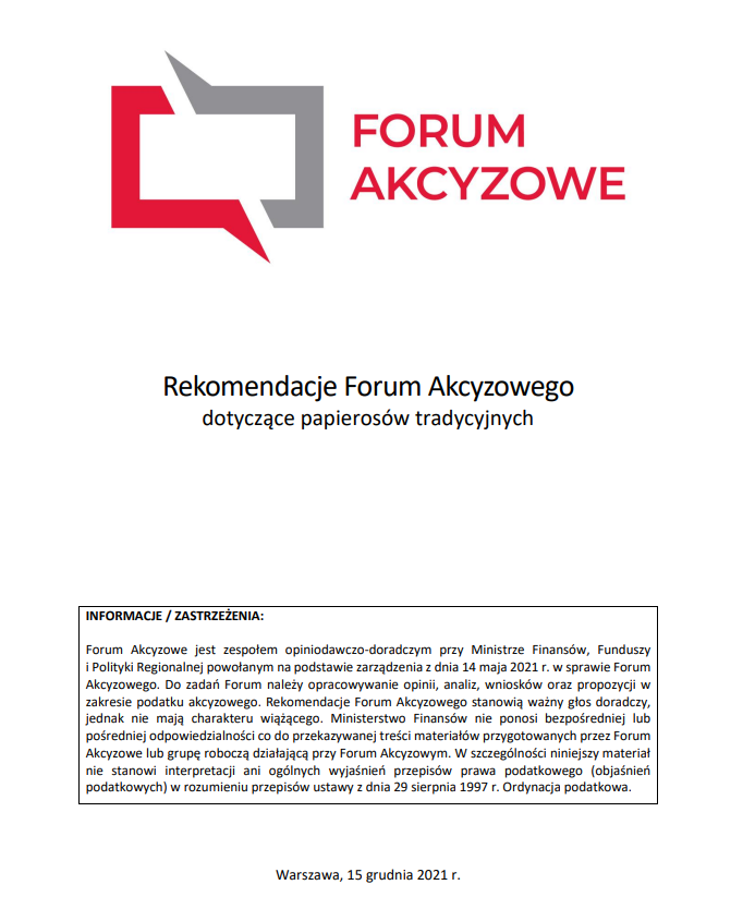 Uczestnictwo w Forum Akcyzowym przy Ministrze Finansów, Funduszy i Polityki Regionalnej, Warszawa 15 grudnia 2021 r.
