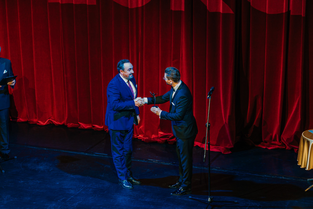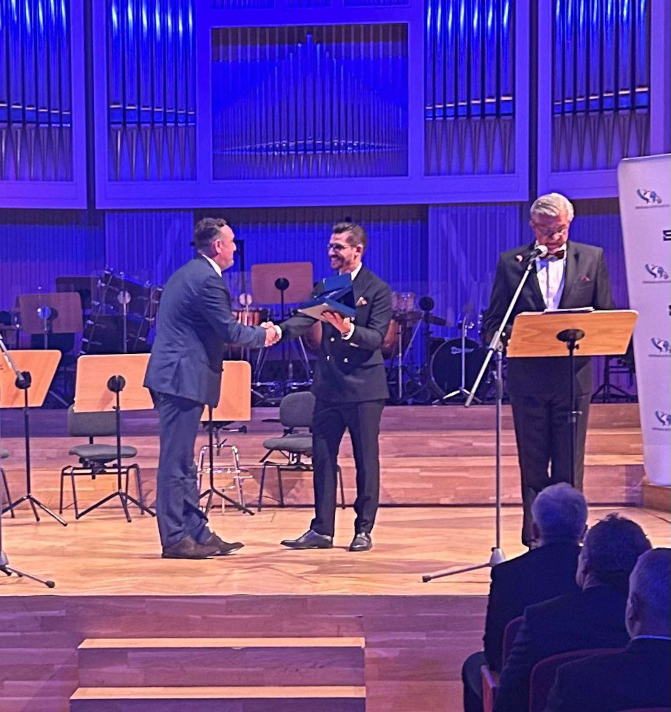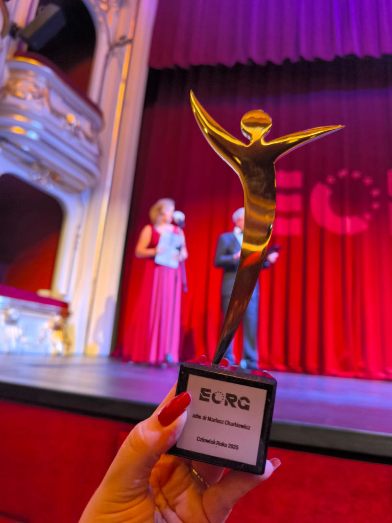 Uroczyste wręczenie adw. dr Mariuszowi Charkiewiczowi tytułu "Człowiek roku 2025" przyznanego przez Kapitułę Programową Europejskiego Ośrodka Rozwoju Gospodarki w Operze Śląskiej w Bytomiu