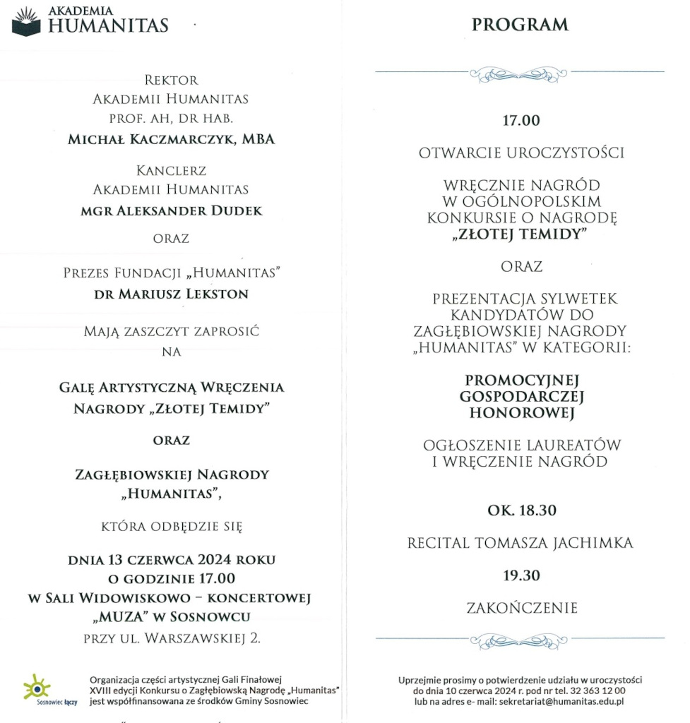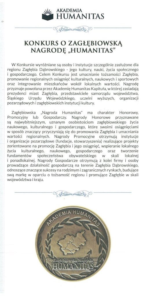 oraz Zagłębiowskiej Nagrody "Humanitas"