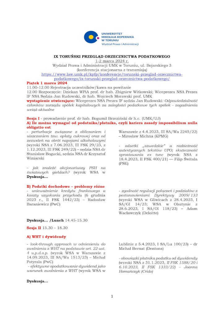 VIII Konferencja Toruński Przegląd Orzecznictwa Podatkowego.