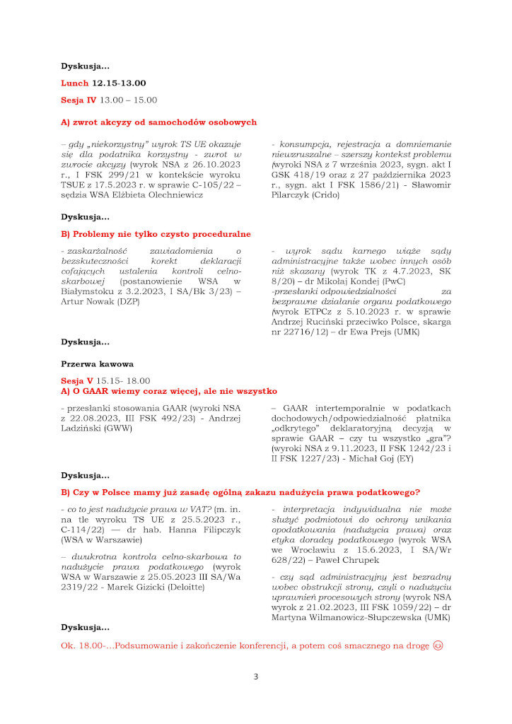 VIII Konferencja Naukowa "Ordynacja podatkowa w praktyce. Ordynacja podatkowa w orzecznictwie sądów administracyjnych oraz Trybunału Konstytucyjnego", Augustów 2014r.