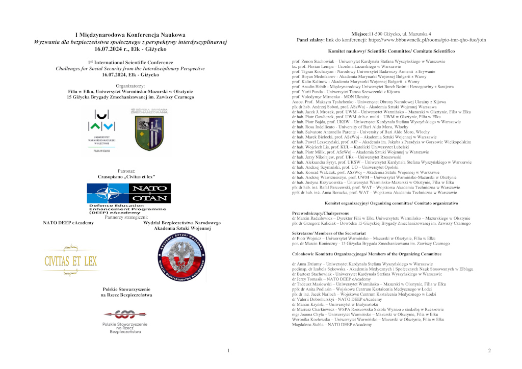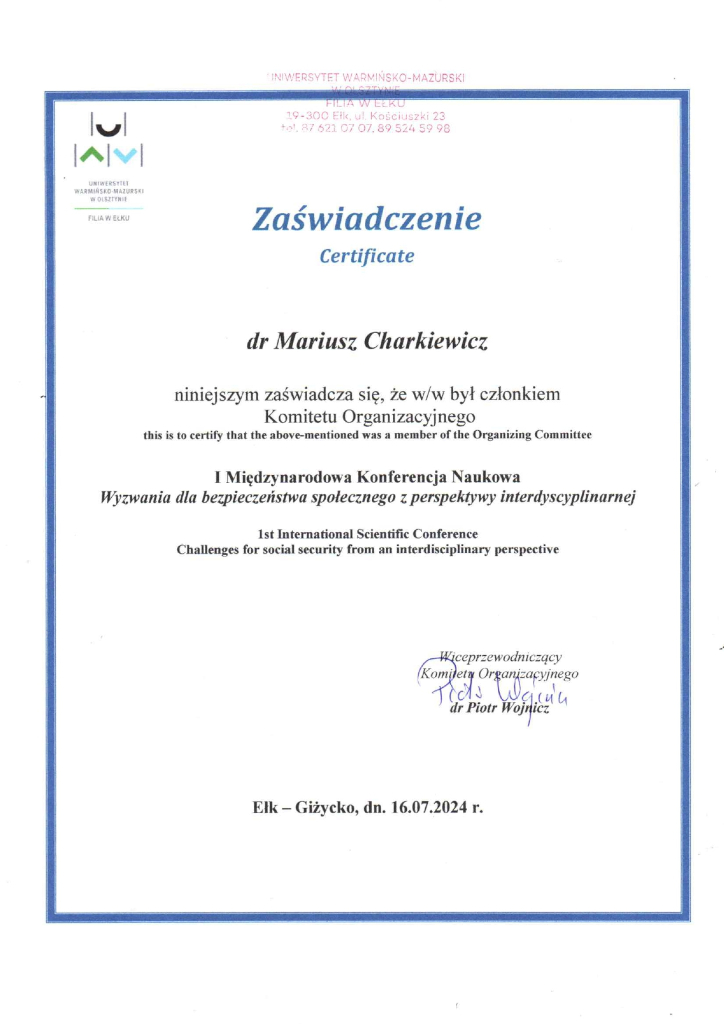Udział w I Międzynarodowej Konferencji Naukowej Wyzwania dla bezpieczeństwa społecznego z perspektywy interdyscyplinarnej”,