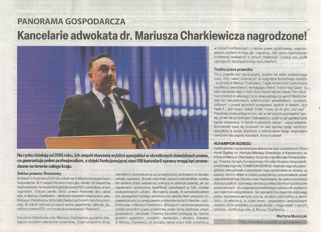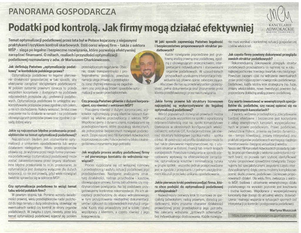 Artykuł opublikowany w Dzienniku Gazecie Prawnej, Panorama Gospodarcza,