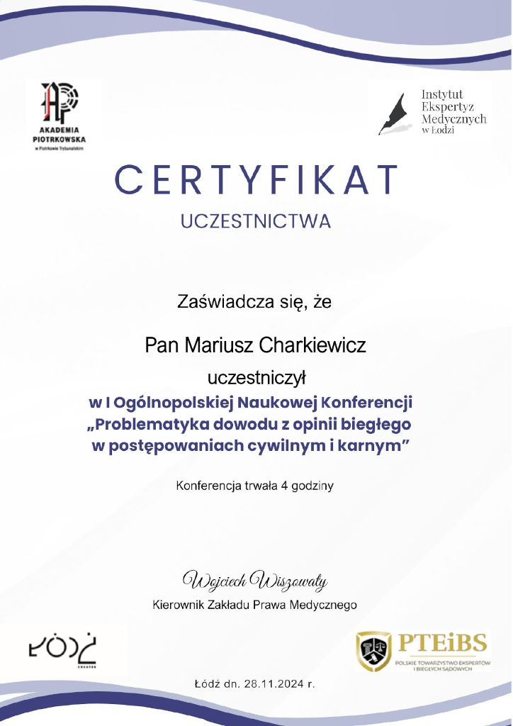 Udział w I Ogólnopolskiej Naukowej Konferencji "Problematyka dowodu z opinii biegłego w postępowaniach cywilnym i karnym",