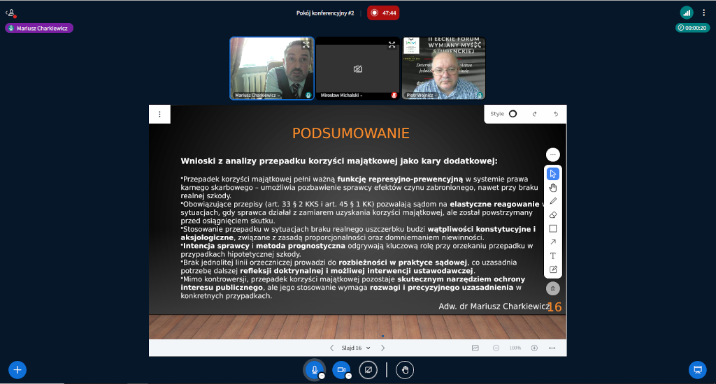 Szkolenie z zakresu środka przepadku w k.k. i k.k.s. zorganizowanym przez Międzynarodowe Centrum Badań i Ekspertyz Kryminologicznych przy Wydziale Prawa Uniwersytetu w Białymstoku, Białystok, 20 sierpnia 2021 r.