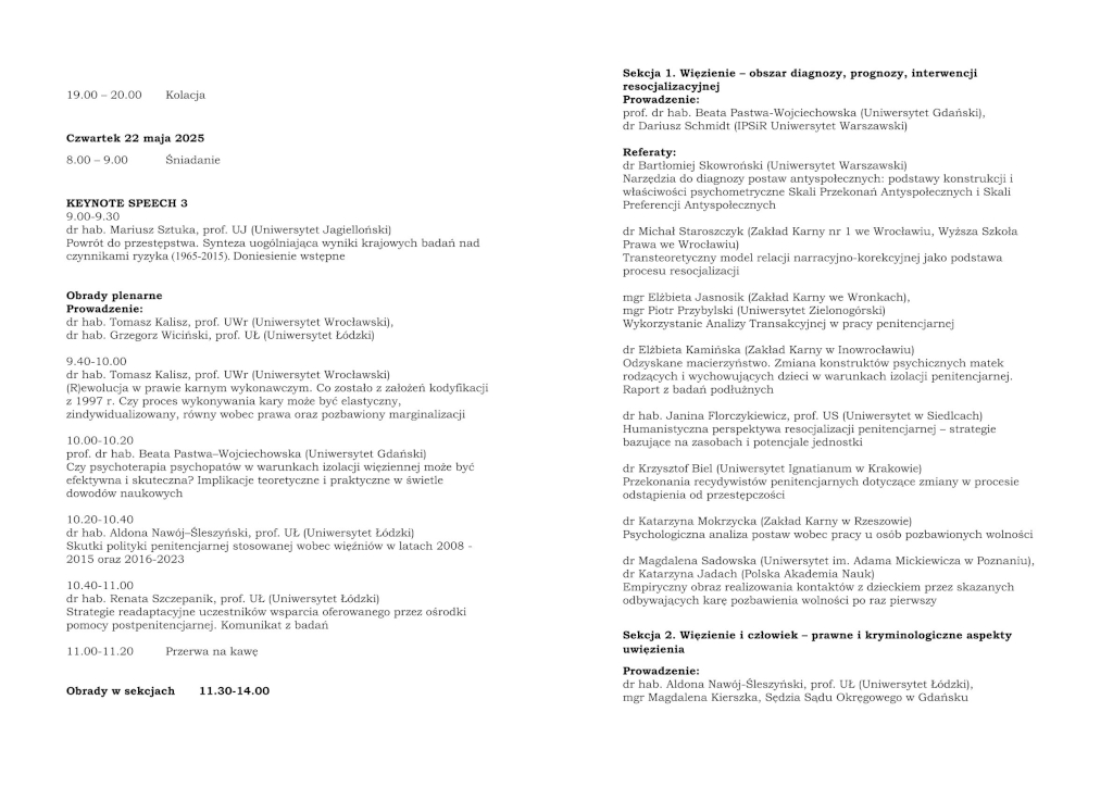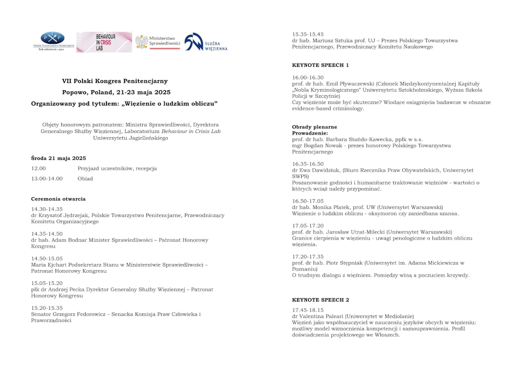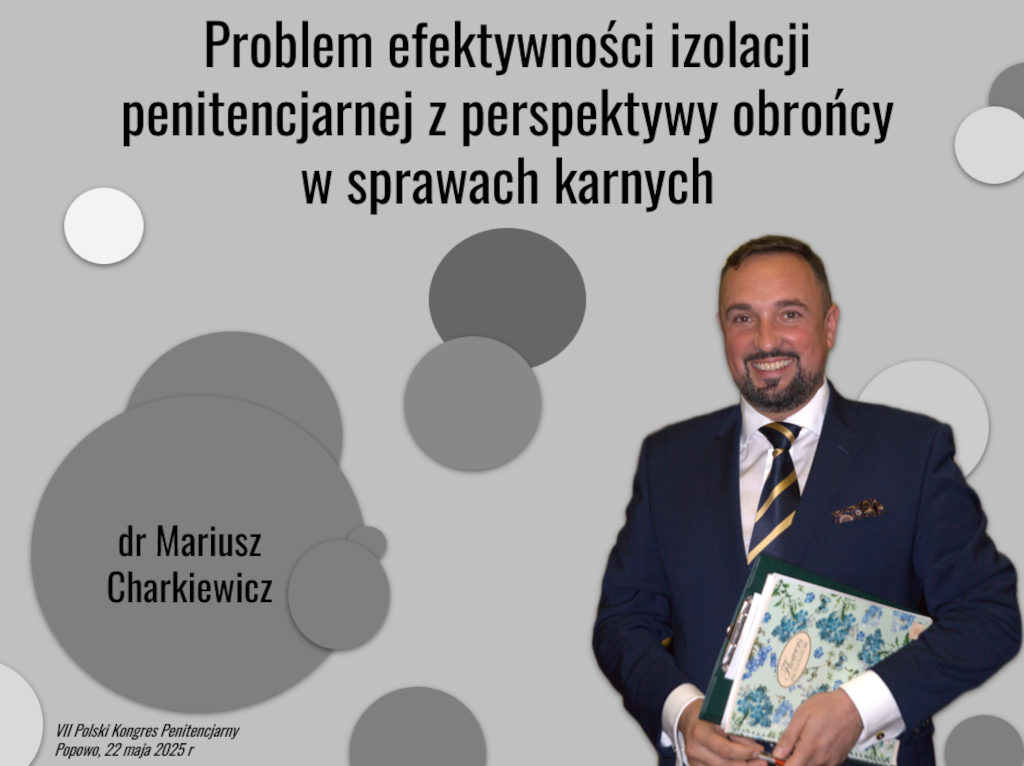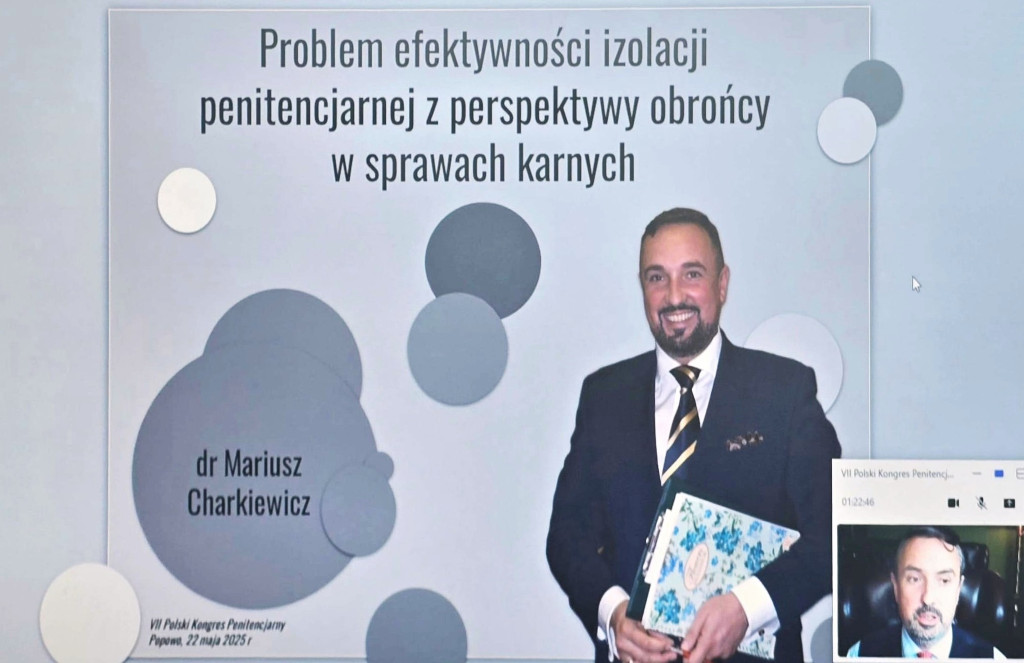 Udział w VII Polskim Kongresie Penitencjarnym "Więzienie o ludzkim obliczu" - wygłoszony referat przez adw. dr Mariusza Charkiewicza nt. "Problem efektywności izolacji penitencjarnej z perspektywy obrońcy w sprawach karnych" - w formie hybrydowej.