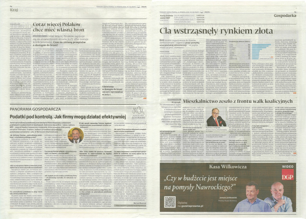 Artykuł w"Dzienniku Gazeta Prawna", dn. 14.08.2024 r., nr 158.
